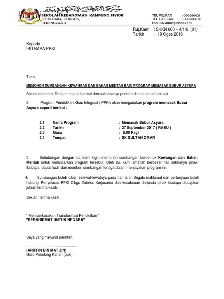 Pecahan kepada bantuan kewangan sebanyak RM392000 adalah seperti berikut. Contoh Surat Rasmi Permohonan Bantuan Kewangan Pendidikan Letter 7saudara Com Surat Mohon Sumbangan Ihya Ramadhan 2013 Related. Jabi melalui dan salinan guru besar sk tok dor 22020 jerteh terengganu yb tan sriyb.