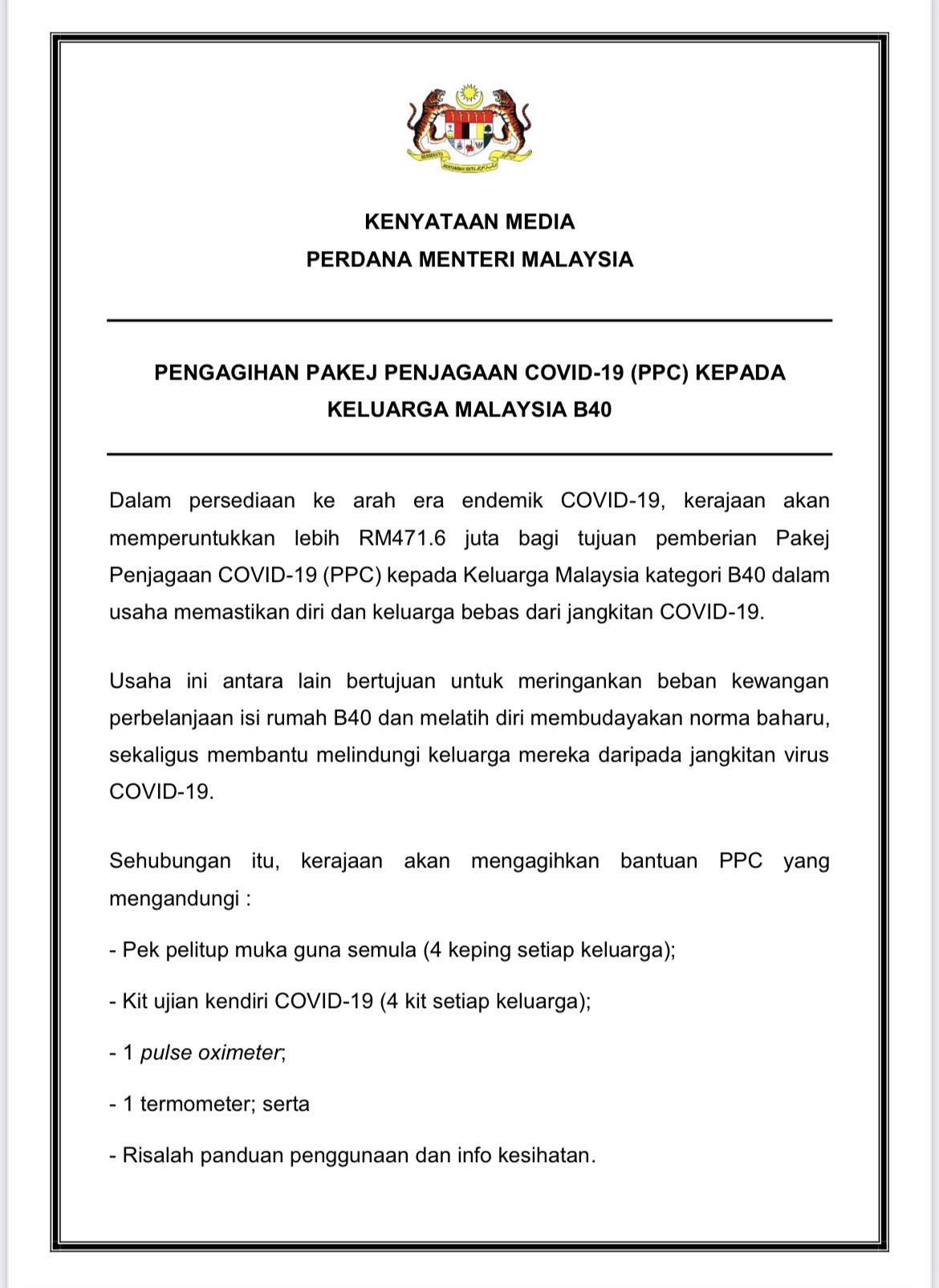 Khairy Jamaluddin On Twitter Pm Ismailsabri60 Has Announced Jkjavmy Will Start Offering Third Booster Doses Of The Covid 19 Vaccine For High Risk Groups Pm Also Announced 3 6mn B40 Households Will Get A